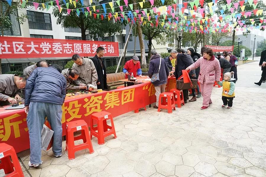 在新春佳節(jié)即將來臨之際,為深入助力文明城區(qū)創(chuàng)建,提升居民幸福感,營造春節(jié)的節(jié)日氣氛,1月23日上午,新城投資集團(tuán)黨支部聯(lián)合環(huán)湖社區(qū)黨支部、宏謀物業(yè)公司在國惠村開展了“便民服務(wù)驛站”國惠村專場暨“喜迎新春寫對聯(lián) 書香情滿送祝?!被顒?dòng),為居民維修家電,送上春聯(lián),帶去節(jié)日的問候。新城投資集團(tuán)黨支部書記周道林,副書記鄧仁友,工會(huì)主席譚力源,環(huán)湖社區(qū)黨支部書記李伊倩,宏謀物業(yè)公司總經(jīng)理劉孝國出席了活動(dòng)。1