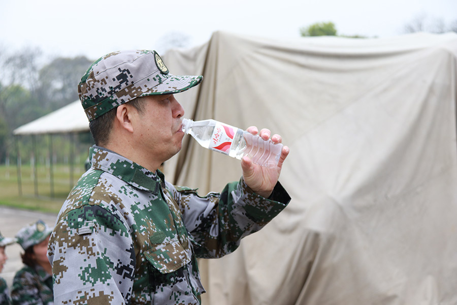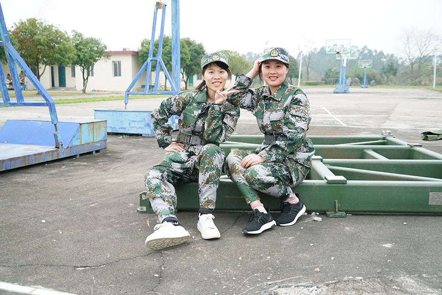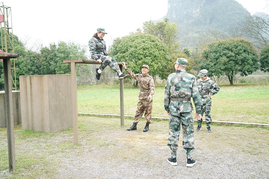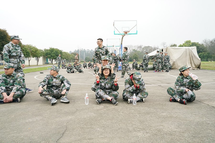 抵達訓(xùn)練場地后,全體人員換上迷彩服,拉開了一天封閉軍訓(xùn)的序幕。
