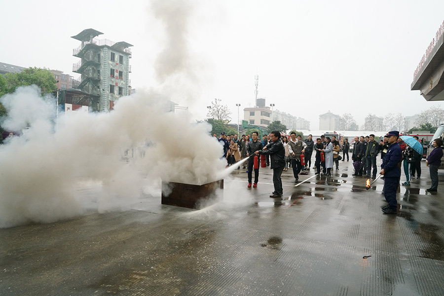 培訓現場,消防隊教官向大家詳細講解了滅火器的種類、使用方法、日常維護等相關知識,并現場示范了干粉滅火器的使用步驟。大家隨后有序到達指定的演練區(qū)域,按照學習的使用方法對模擬火場進行了實地撲救,參訓人員基本做到了操作規(guī)范、方法正確、態(tài)度端正、撲救有效的演練要求,達到了預期的效果。