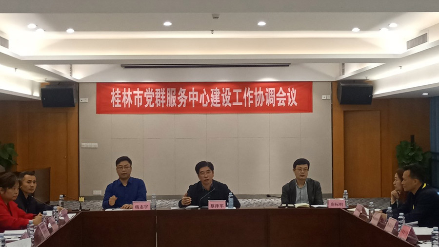 2019年5月9日,市委組織部常務(wù)副部長(zhǎng)、市黨群服務(wù)中心建設(shè)工作領(lǐng)導(dǎo)小組副組長(zhǎng)蔡澤軍在新城投資集團(tuán)1001會(huì)議室主持召開(kāi)桂林市黨群服務(wù)中心建設(shè)協(xié)調(diào)會(huì)議。臨桂新區(qū)工委副書(shū)記、管委會(huì)副主任、市黨群服務(wù)中心建設(shè)工作領(lǐng)導(dǎo)小組副組長(zhǎng)唐標(biāo)明出席會(huì)議。