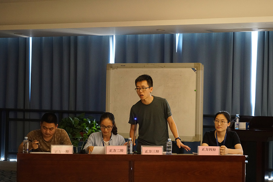 決賽:知難行易/知易行難。對(duì)陣雙方:正方(梁雯棋、陳艷梅、譚佳璐、周鑫)對(duì)陣反方(陳茜、曾曼、顧夢(mèng)潔、蔣磊)。