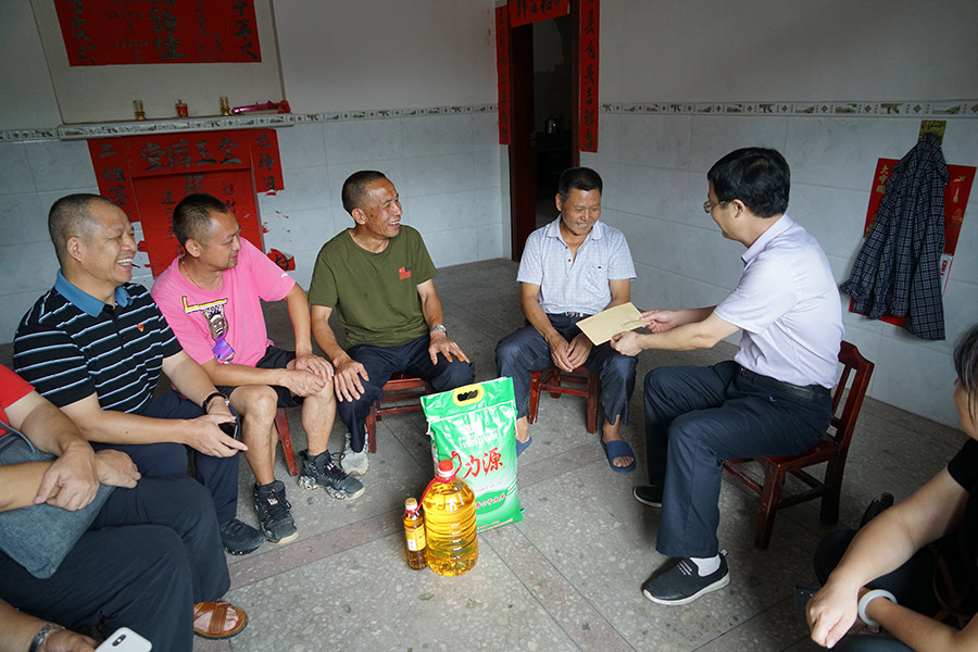 為紀(jì)念建黨98周年,在實(shí)踐中深入學(xué)習(xí)貫徹習(xí)近平新時(shí)代中國(guó)特色社會(huì)主義思想和黨的十九大精神,營(yíng)造“不忘初心、牢記使命”主題教育氛圍,7月19日臨桂新區(qū)工委及臨桂新區(qū)黨總支下轄的機(jī)關(guān)黨支部、新城投資集團(tuán)黨支部赴資源縣兩水苗族鄉(xiāng)煙竹村(管委、新城投資集團(tuán)幫扶極度貧困村)開展“不忘初心,牢記使命”主題黨日活動(dòng)。臨桂新區(qū)工委副書記、管委會(huì)副主任唐標(biāo)明走訪慰問貧困黨員,市紀(jì)委派駐臨桂新區(qū)紀(jì)檢組副組長(zhǎng)唐良平,新城投資集團(tuán)黨支部書記、董事長(zhǎng)、總經(jīng)理周道林陪同慰問。