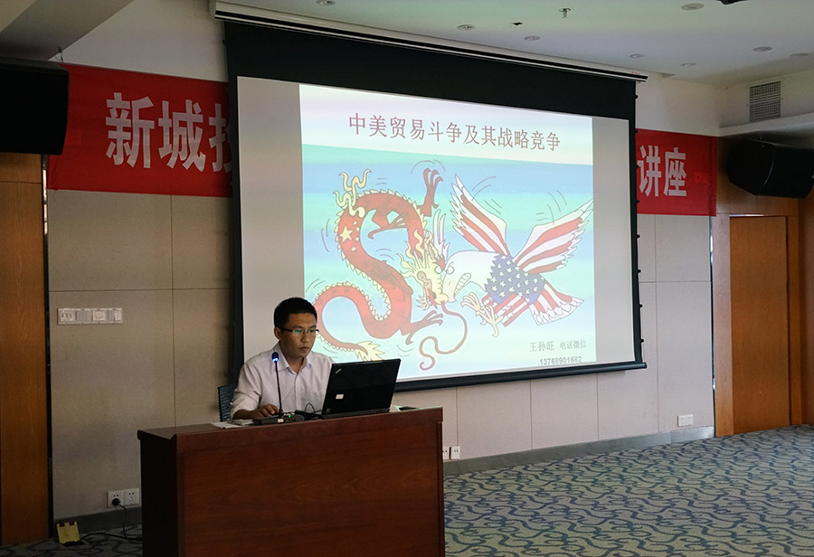 為加強(qiáng)集團(tuán)公司黨員干部對(duì)當(dāng)前形勢(shì)與政策相關(guān)內(nèi)容的學(xué)習(xí)和理解,增強(qiáng)愛國(guó)熱情,更好地從國(guó)際、國(guó)家形勢(shì)政策層面認(rèn)知公司發(fā)展現(xiàn)狀,10月15日,新城投資集團(tuán)黨總支在集團(tuán)辦公大樓1001會(huì)議室開展了形勢(shì)政策教育專題講座。本次講座邀請(qǐng)了中共桂林市委黨校講師王孫旺為大家講授《中美貿(mào)易斗爭(zhēng)及其戰(zhàn)略競(jìng)爭(zhēng)》。新城投資集團(tuán)黨總支籌備領(lǐng)導(dǎo)小組副組長(zhǎng)、副總經(jīng)理鄧仁友主持講座。新城投資集團(tuán)黨總支籌備領(lǐng)導(dǎo)小組組長(zhǎng)、董事長(zhǎng)周道林參加講座并作總結(jié)發(fā)言。集團(tuán)公司班子成員、黨員代表、中層管理干部、主管人員參加學(xué)習(xí)。