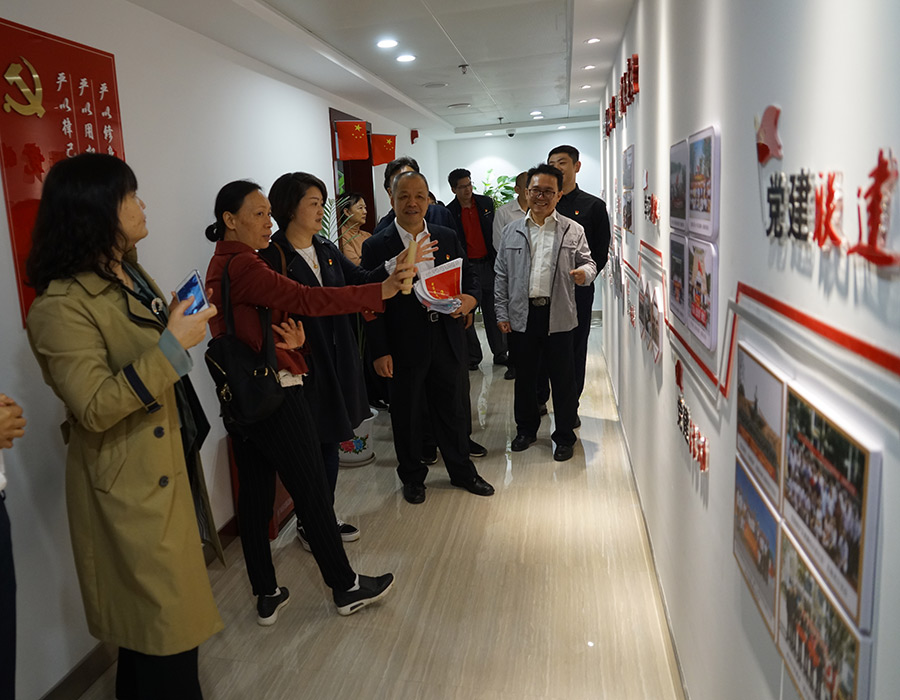 在一樓黨群展示區(qū),肖揚(yáng)燕駐足觀看了公司黨建宣傳片,強(qiáng)烈感受到新城投資集團(tuán)黨支部狠抓黨建、促融資建設(shè)、提員工精神面貌的實(shí)際成效。依次參觀了新城投資集團(tuán)企業(yè)簡(jiǎn)介、企業(yè)文化、集團(tuán)大事記、集團(tuán)組織架構(gòu)、黨務(wù)公開(kāi)欄、工會(huì)和共青團(tuán)介紹等版塊,不時(shí)與周書(shū)記探討與互動(dòng)。在十五樓,肖揚(yáng)燕被走廊兩邊的黨建氛圍營(yíng)造展示墻、辦公室門(mén)口的“黨員心語(yǔ)”以及黨員會(huì)議室濃濃的黨建氛圍所吸引,給予高度評(píng)價(jià)。她說(shuō),自己從事基層黨務(wù)工作多年,走訪了那么多單位,今天看到的新城投資集團(tuán)黨建展示區(qū)是做得最好的、最有亮點(diǎn)的,充分感受到新城投資集團(tuán)真正將抓黨建付諸于行動(dòng)和實(shí)踐。桂林市黨群服務(wù)中心選址在新城投資集團(tuán)辦公大樓一樓,整棟樓黨建氛圍濃、設(shè)計(jì)起點(diǎn)高、品位雅致、內(nèi)涵豐富,值得臨桂區(qū)直機(jī)關(guān)工委組織下屬單位黨組織過(guò)來(lái)觀摩學(xué)習(xí)。