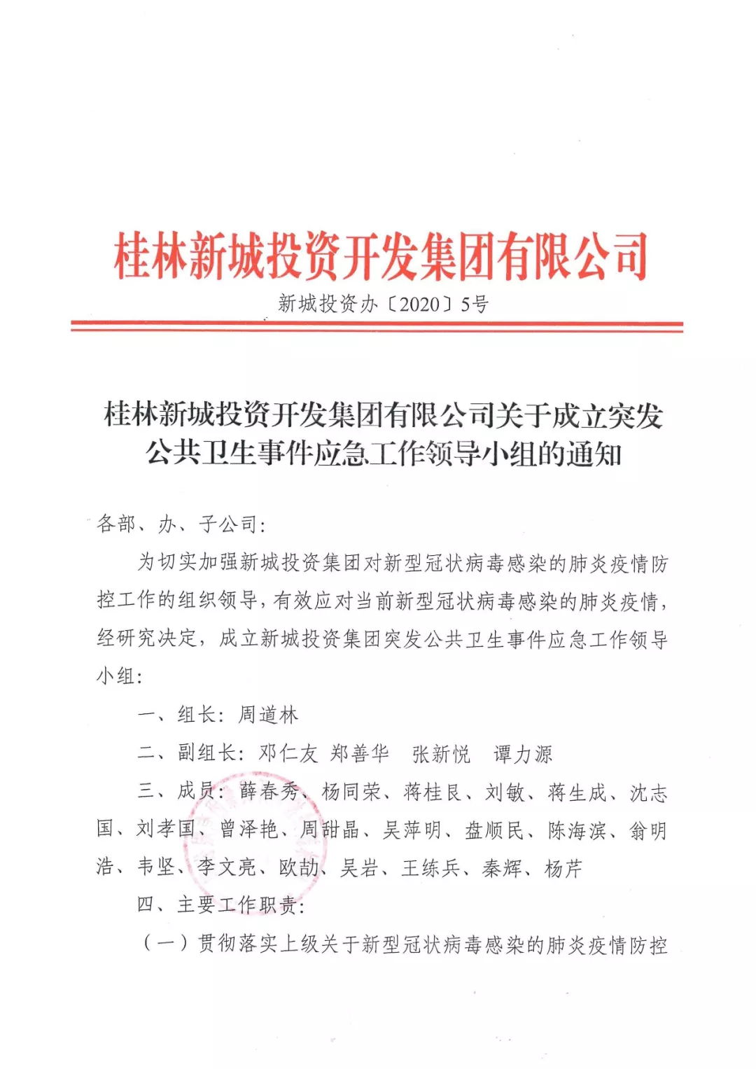 在新春佳節(jié)、闔家團(tuán)聚之際,新型冠狀病毒感染肺炎疫情防控形勢十分嚴(yán)峻。黨中央對(duì)疫情防控工作高度重視,習(xí)近平總書記作出重要指示。自治區(qū)黨委、政府和市委、市政府正在密集部署疫情防控工作,為響應(yīng)切實(shí)打贏疫情防控狙擊戰(zhàn)的戰(zhàn)斗號(hào)召,新城投資集團(tuán)黨支部書記、董事長、總經(jīng)理周道林要求集團(tuán)公司迅速進(jìn)入“戰(zhàn)時(shí)狀態(tài)”,堅(jiān)決貫徹落實(shí)習(xí)近平總書記重要指示和講話精神,把抗擊疫情作為檢驗(yàn)“不忘初心、牢記使命”主題教育成效的又一“試金石”,切實(shí)履行主體責(zé)任和工作職責(zé),及時(shí)掌握疫情,及時(shí)采取行動(dòng),做到守土有責(zé)、守土盡責(zé),堅(jiān)決遏制疫情蔓延勢頭。