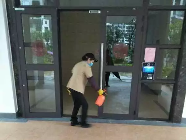 對(duì)所管項(xiàng)目的室內(nèi)場所實(shí)行全面消毒。對(duì)出入門禁、康體設(shè)施、地下車庫、電梯、垃圾中轉(zhuǎn)站等關(guān)鍵區(qū)位噴灑消毒水;使用醫(yī)用酒精、84消毒液等消毒劑擦拭兒童娛樂設(shè)施、公共通道的門把手、開關(guān)、按鍵等。針對(duì)人流密集的項(xiàng)目加大消毒頻次。