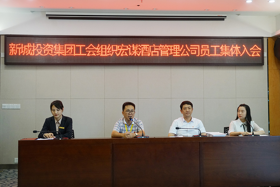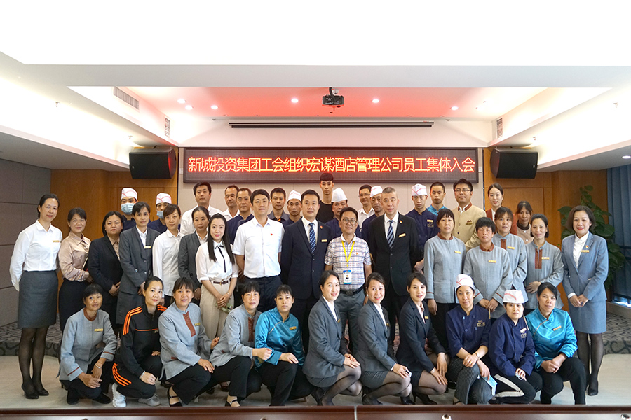 6月23日,新城投資集團工會舉辦宏謀酒店管理公司108名員工集體加入集團工會儀式。