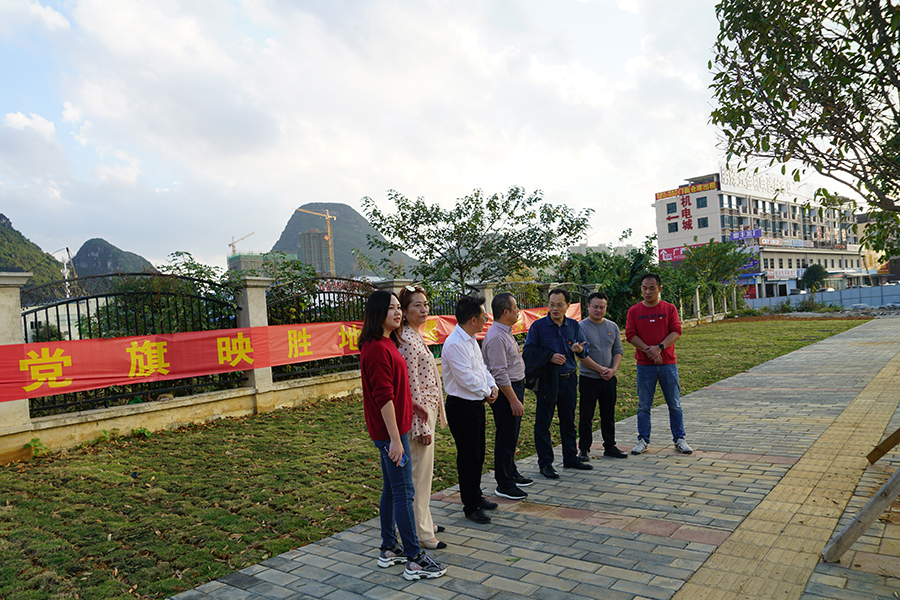 11月18日下午,臨桂新區(qū)工委委員、管委會副主任蔣玖明一行到西城大道南延長線道路提升工程項目現(xiàn)場調(diào)研,指導(dǎo)西城大道南延長線項目聯(lián)合黨支部黨建工作。臨桂新區(qū)工委組織人事部部長、創(chuàng)建領(lǐng)導(dǎo)小組辦公室主任梁利,新區(qū)黨總支委員、創(chuàng)建領(lǐng)導(dǎo)小組辦公室副主任藍方,新城投資集團黨總支書記、董事長、總經(jīng)理周道林,黨總支組織委員、工會主席譚力源陪同調(diào)研。