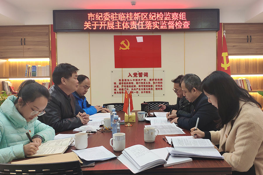 12月14日上午,市紀(jì)委派駐臨桂新區(qū)管委會(huì)紀(jì)檢監(jiān)察組副組長唐良平一行到新城投資集團(tuán),召開2020年度全面從嚴(yán)治黨主體責(zé)任落實(shí)情況檢查匯報(bào)會(huì)。
