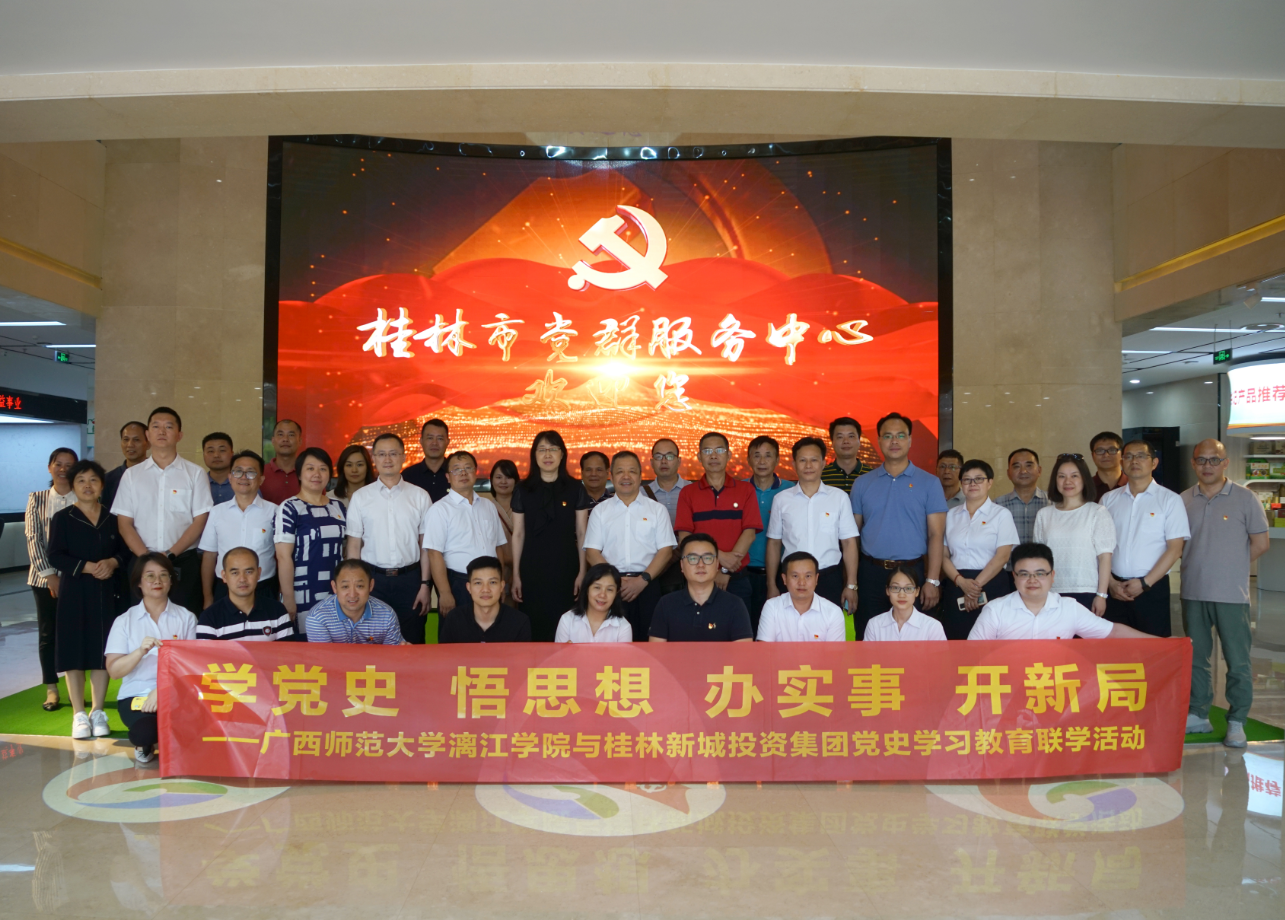為學(xué)習(xí)貫徹習(xí)近平總書記在廣西考察期間重要講話精神,圍繞漓江學(xué)院中心工作,加強(qiáng)新城投資集團(tuán)黨總支與漓江學(xué)院黨委黨史學(xué)習(xí)互動,促進(jìn)新城投資集團(tuán)公司與漓江學(xué)院共同發(fā)展,6月8日,新城投資集團(tuán)與漓江學(xué)院開展黨史學(xué)習(xí)教育聯(lián)學(xué)活動。集團(tuán)黨總支書記、董事長、漓江學(xué)院董事長周道林,漓江學(xué)院校長楊樹喆出席會議并講話。漓江學(xué)院黨委書記唐文紅主持會議。