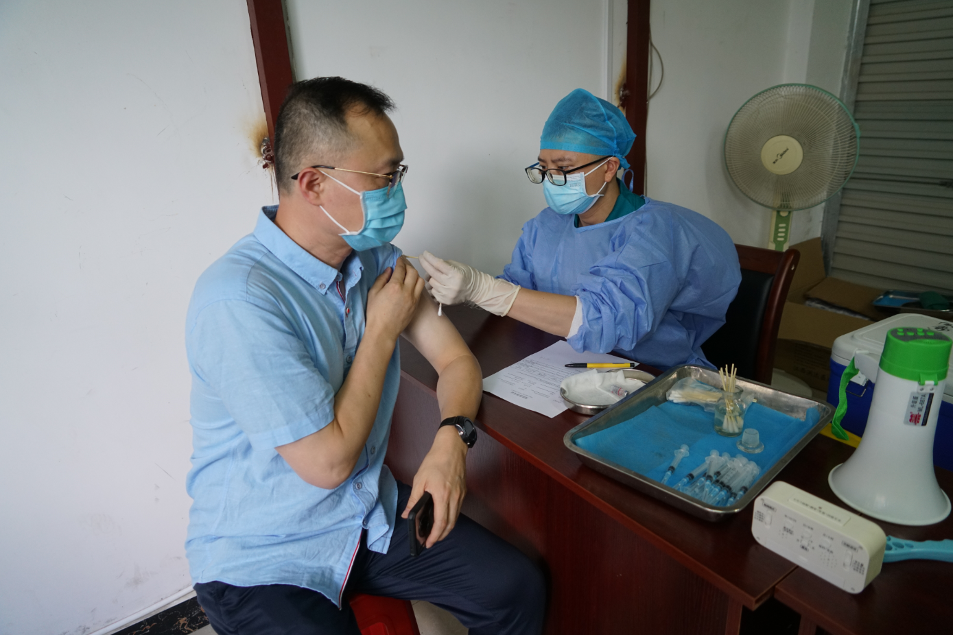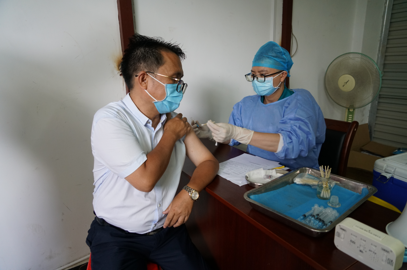 第二針接種流程與第一針相同,現(xiàn)場(chǎng)分為登記區(qū)、錄入?yún)^(qū)、接種區(qū)、留觀區(qū)和緊急處置區(qū)。集團(tuán)黨總支書(shū)記周道林,副總經(jīng)理吳濤,工會(huì)主席譚力源等到現(xiàn)場(chǎng)了解接種現(xiàn)場(chǎng)安排情況并帶頭接種新冠疫苗第二針。
