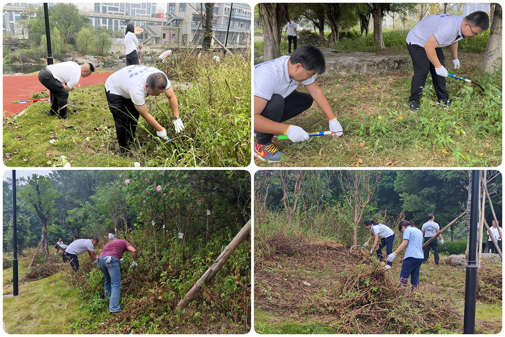 隨著動員令的下達,集團公司領(lǐng)導班子成員親自掛帥,全體黨員迅速分為三支“生態(tài)衛(wèi)士”隊伍,大家手持鐮刀、鐵鍬、掃把等工具,彎下腰、俯下身,全面投入到割雜草枯草、清除草叢雜物、清理地面垃圾、清運垃圾等各項“洗臉”活動中,以實際行動踐行了“綠水青山就是金山銀山”的理念。