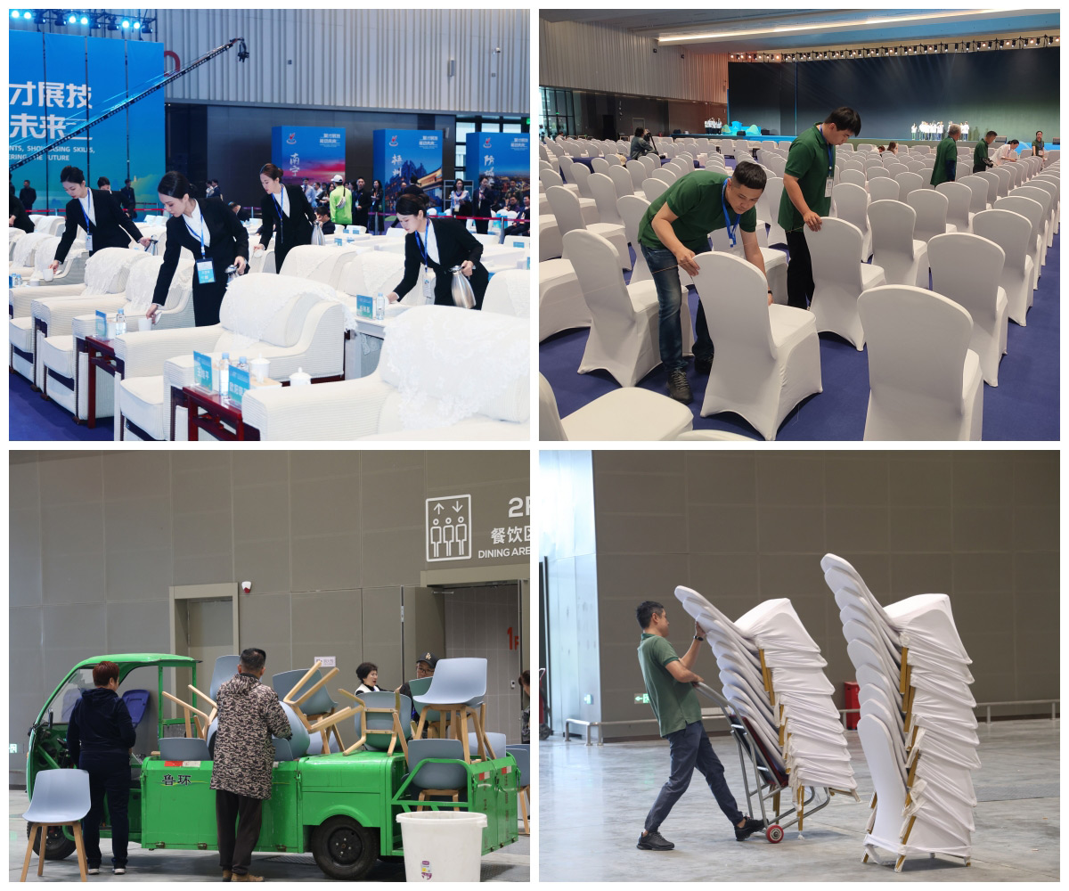 為確?;顒禹樌e辦,會展服務(wù)公司自2024年2月起,多次組織團隊前往廣西壯族自治區(qū)人力資源和社會保障廳及桂林市人力資源社會保障局進行深入對接,全面掌握賽事細節(jié),并量身定制了服務(wù)接待方案。在活動期間,桂林國際會展中心不僅承辦了技能大賽的開閉幕式、國內(nèi)外論壇等重要會務(wù)服務(wù),還為技能大賽的32個比賽項目提供了包括水、電、網(wǎng)絡(luò)及監(jiān)控設(shè)施改造在內(nèi)的綜合保障服務(wù),并為約2.2萬人次提供了餐飲服務(wù)。會展服務(wù)公司安全保衛(wèi)部高級主管韋民強表示:“在本次大賽中,我主要承擔了安保溝通和場館交通管理的職責,對此我感到無比榮幸,并深感肩負重任?!?/strong>在賽事進行期間,韋民強與團隊成員緊密合作,確保了安保措施高效執(zhí)行和交通管理的順暢有序,為賽事的圓滿成功提供了堅實保障。