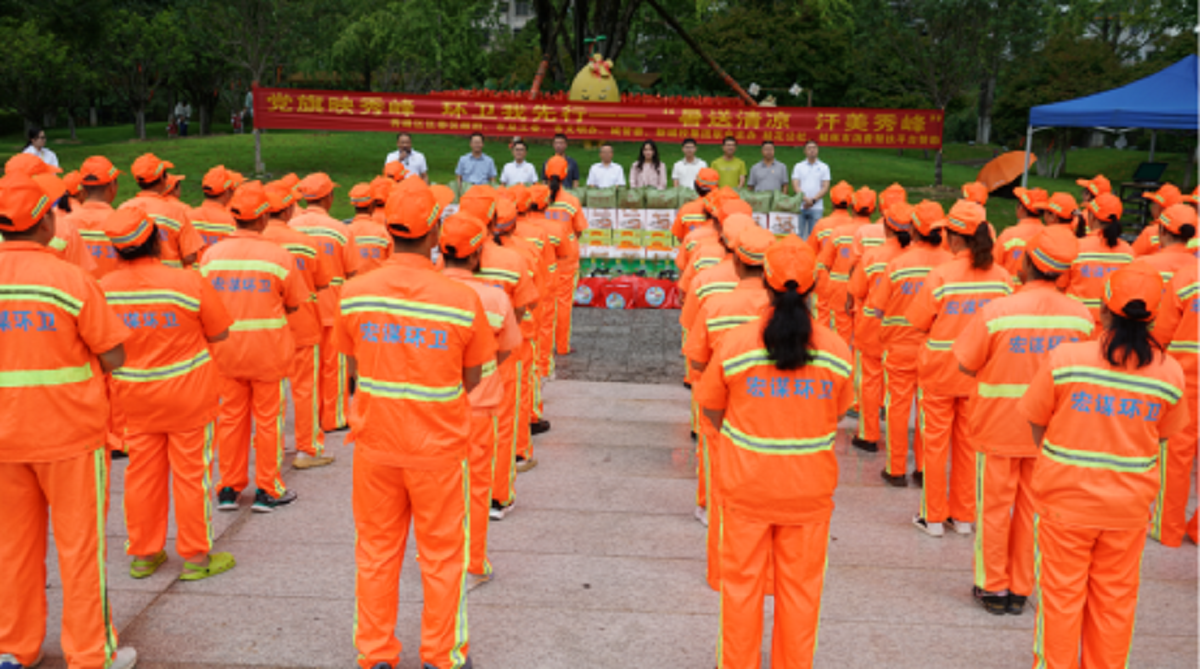 活動現(xiàn)場,與會領(lǐng)導(dǎo)向環(huán)衛(wèi)工人發(fā)放綠豆、涼茶等消暑慰問品,并贈送“夏日清涼關(guān)懷包”,為炎炎夏日堅守崗位的環(huán)衛(wèi)工人送去絲絲清涼。領(lǐng)導(dǎo)們與職工親切交流,詳細了解其工作與身體狀況,叮囑大家增強安全防護意識,合理調(diào)整作業(yè)時間,切實做好防暑降溫,確保身心健康與作業(yè)安全。秀峰環(huán)衛(wèi)項目職工備受鼓舞,紛紛表示:“環(huán)衛(wèi)工人哪里去?還是要去秀峰區(qū)”!