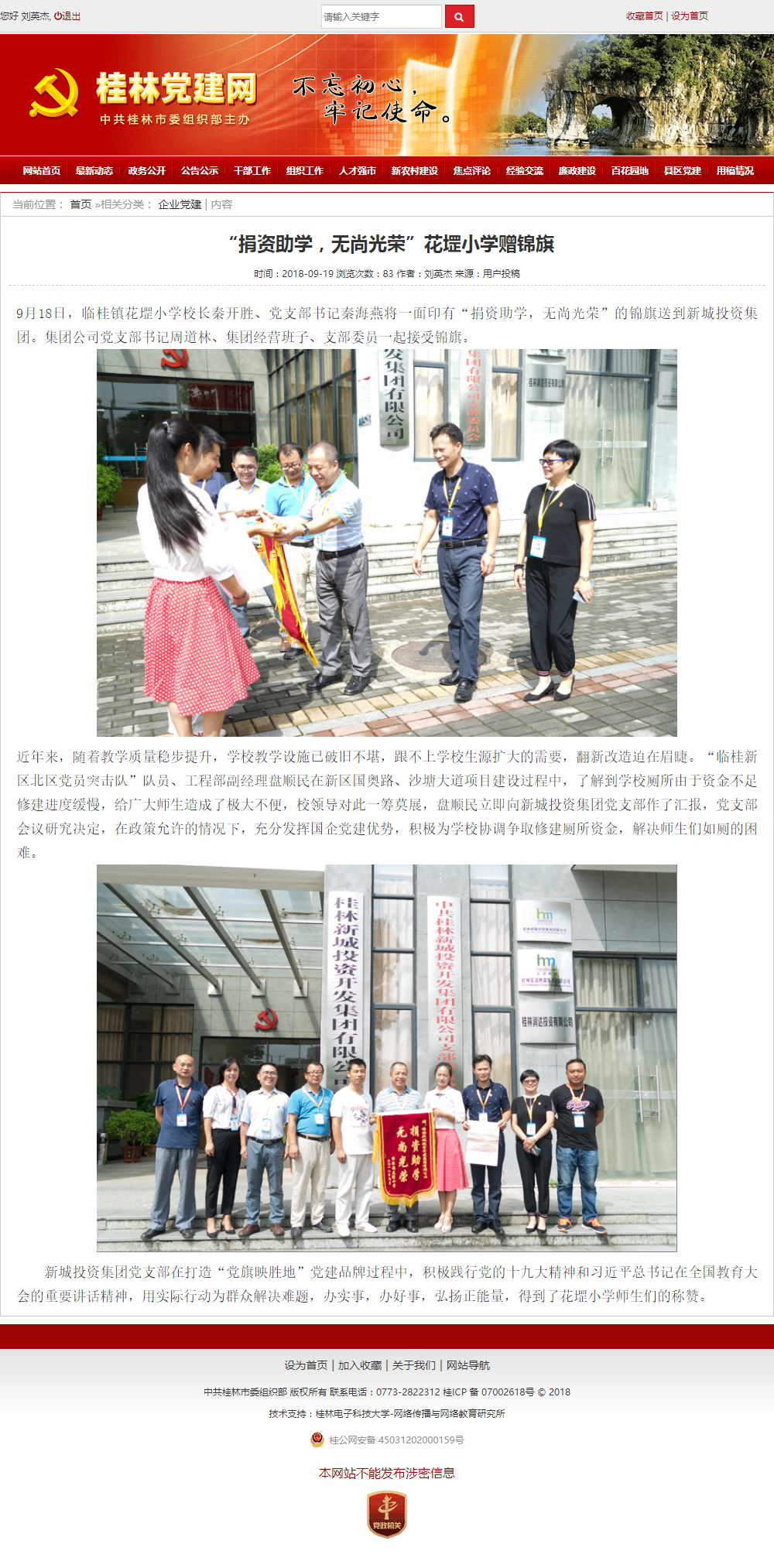 桂林黨建網(wǎng) “捐資助學(xué),無尚光榮”花堽小學(xué)贈(zèng)錦旗