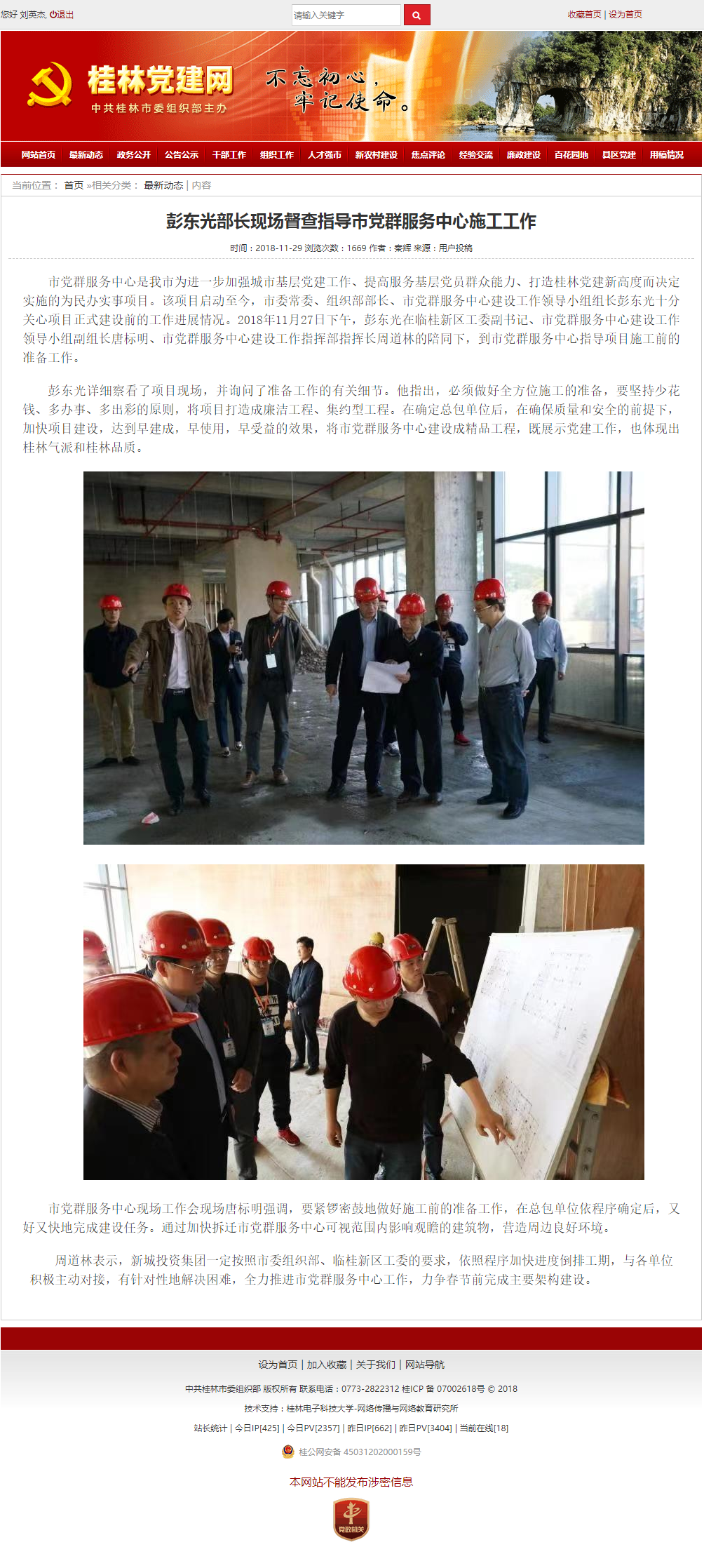 桂林黨建網(wǎng)-彭東光部長(zhǎng)現(xiàn)場(chǎng)督查指導(dǎo)市黨群服務(wù)中心施工工作