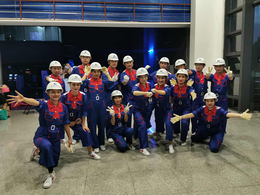本次參演的演員們來自集團公司及各個子公司,有動作不協(xié)調(diào)的工程技術理工男,有只擅埋頭碼字的行政文員,有物業(yè)安保小哥,有房產(chǎn)銷售精英等等,在這個節(jié)目里,他們都是新區(qū)建設者的代表和縮影。沒有舞臺經(jīng)驗的他們,靠著一遍遍的艱苦練習,一個月下來,每個人的膝蓋都是烏青發(fā)紫,終于將動作做到了整齊劃一。演員吳春妍同志剛休完產(chǎn)假,家里孩子還在哺乳中,為了支持她的排練演出,孩子爸爸常常幫把孩子送到在排練中的媽媽手上,以節(jié)約她回家的時間。許多演員為了排練,推掉了孩子暑假的活動安排,犧牲了假期。一些演員是白班夜班輪班制的,為了參加統(tǒng)一排練,調(diào)班連續(xù)工作。