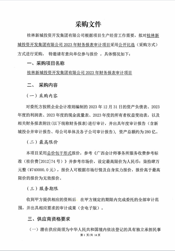 桂林新城投資開發(fā)集團(tuán)有限公司2023年財(cái)務(wù)報(bào)表審計(jì)項(xiàng)目采購文件