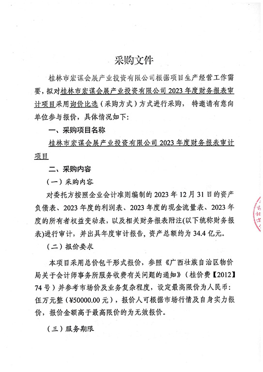 桂林市宏謀會展產(chǎn)業(yè)投資有限公司?2023年度財(cái)務(wù)報(bào)表審計(jì)項(xiàng)目采購文件
