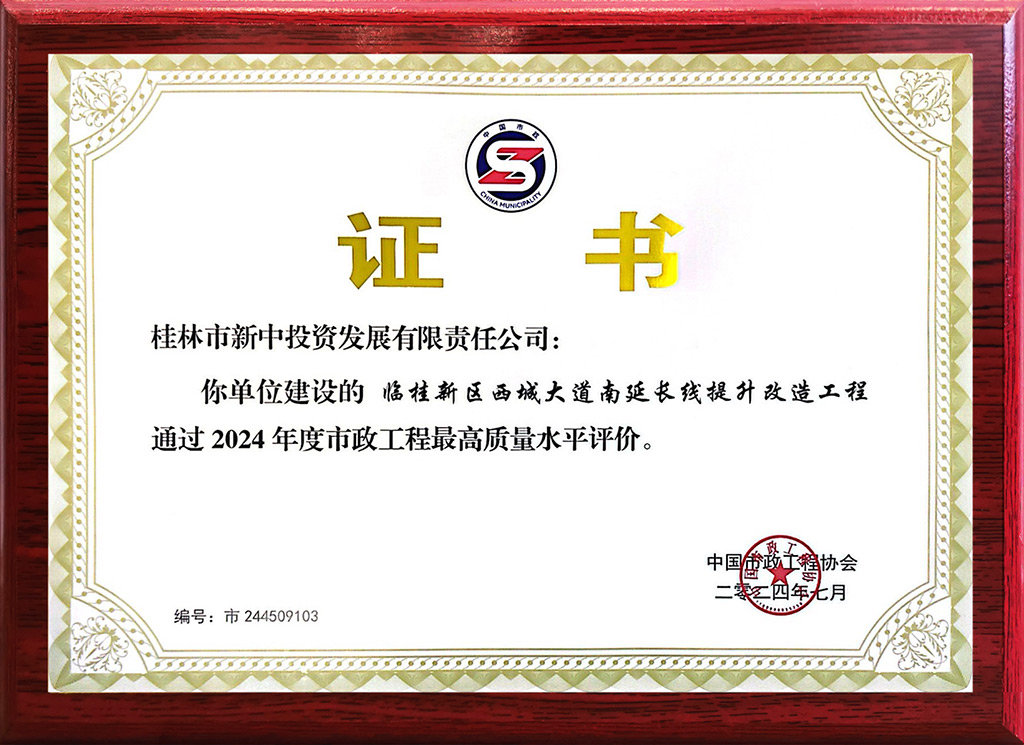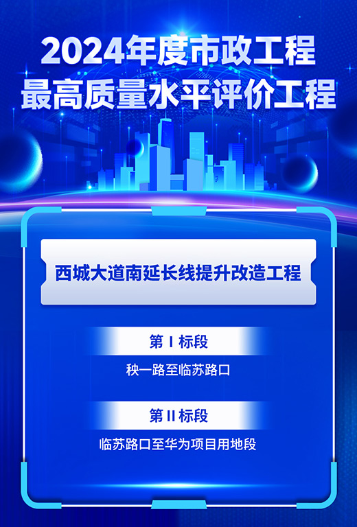 近日,中國市政工程協(xié)會公布了2024年度市政工程最高質(zhì)量水平評價工程名單,新城投集團黨委黨建子品牌“黨旗映勝地 建設我先行”重要實踐地——西城大道南延長線提升改造工程(以下簡稱“西城大道南延長線工程”)榮登榜單。該獎項(即原國家市政工程金獎)是市政工程行業(yè)在工程質(zhì)量方面最高質(zhì)量水平評價,代表市政工程行業(yè)同時期國內(nèi)頂尖水平,在行業(yè)內(nèi)具有重要的示范引領(lǐng)作用。西城大道南延長線工程榮獲此殊榮,充分證明新城投集團在市政建設領(lǐng)域的實力。
