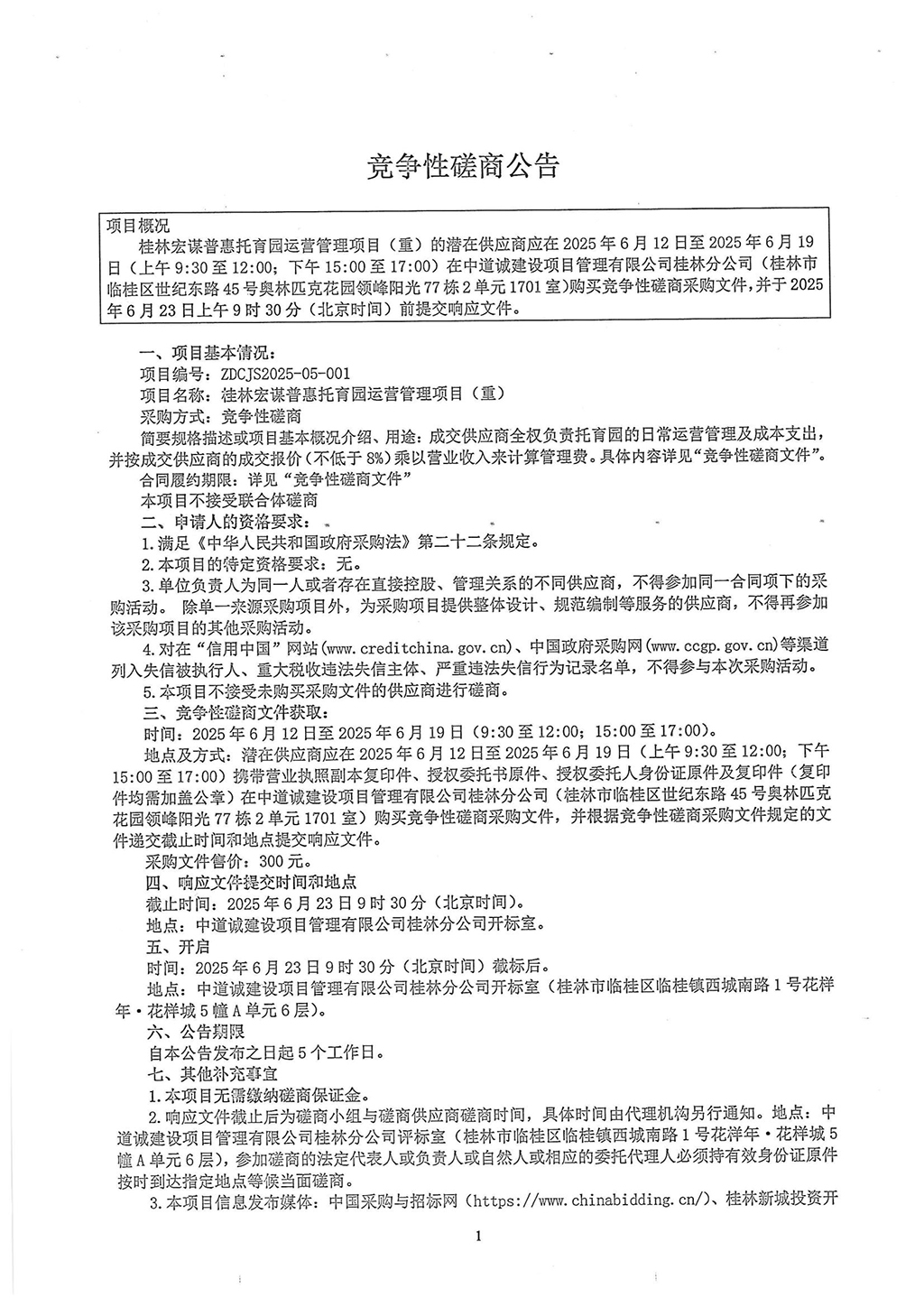 桂林宏謀普惠托育園運(yùn)營(yíng)管理項(xiàng)目(重)競(jìng)爭(zhēng)性磋商公告